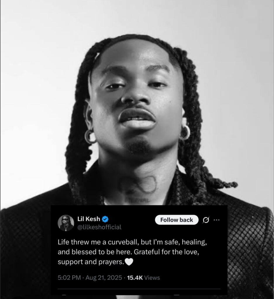 Breaking his silence on X, Lil Kesh assured fans he is recovering. “Life threw me a curveball, but I’m safe, healing, and blessed to be here. Grateful for the love, support and prayers,” he wrote. The post quickly went viral, with fans flooding his page with messages of relief and continued prayers.