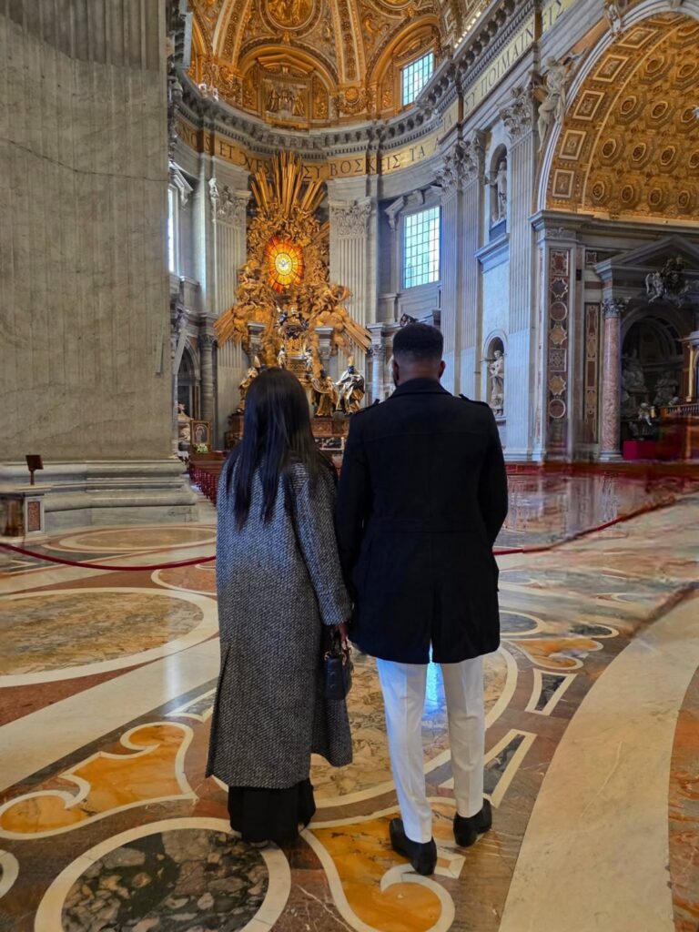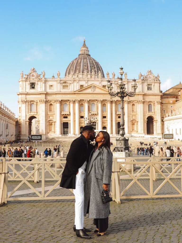 Ebuka Obi-Uchendu is marking his 10th wedding anniversary with his wife, Cynthia, in a thoughtful and memorable way. To celebrate the milestone, the media personality and his wife travelled to Rome, where Ebuka surprised Cynthia with a fresh proposal in front of St Peter’s Basilica in Vatican City. He went down on one knee and presented her with a ring.