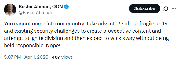 According to Ahmad, Barbir had been moving through communities in Nigeria’s North Central region, where he was allegedly involved in actions that could worsen religious divisions. He stated, “A reliable source has informed me that the individual, Alex Barbir, has been asked by authorities to exit the country over concerns about his activities.”
